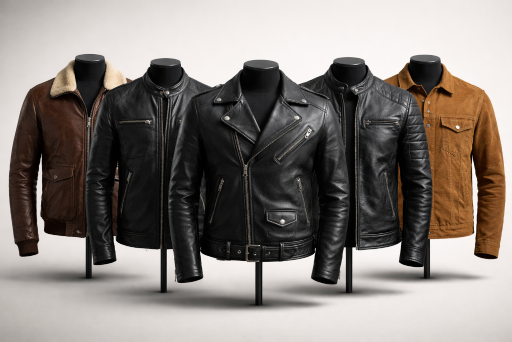 Available in biker jackets, bomber jackets, and classic designs with customization options for international buyers.